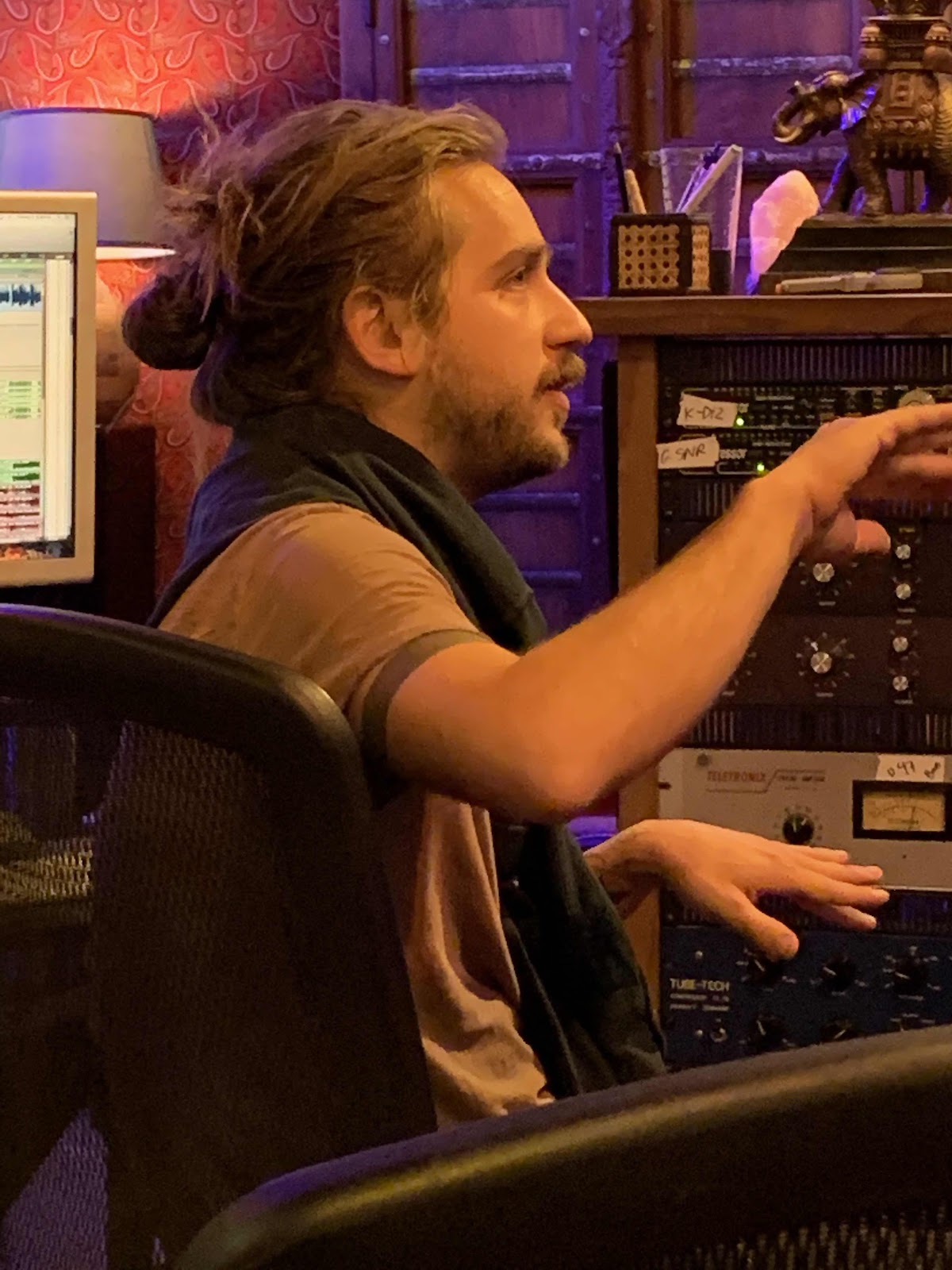 Kyler was amazing in post production. His sound booth had a big board and a keyboard that rolled out like a wide drawer from under that. He had a box with about six guitars and a TV tray full of stomp/effects boxes off to the right of the board. He’d pull out a guitar (say the telecaster) and bang on the stomp box switches until the right sound came out, sometimes standard telecaster, sometimes steel guitar or slide.
